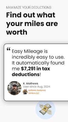 Looking for a reliable mileage tracking solution? 🚗 Easy Mileage is your go-to app for automatic mileage tracking and comprehensive expense logging, designed to maximize your tax deductions and streamline your business operations. Trusted by professionals across industries, Easy Mileage leverages your phone’s GPS to automatically track every mile you drive, ensuring precise and hassle-free mileage logs for tax reporting and reimbursements.