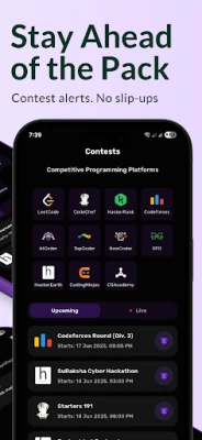 Contest Hunt is your all-in-one competitive programming companion built for coders, students, developers, and hackers. Get real-time access to competitive coding schedules, hackathon alerts, and bug bounty opportunities — all in one sleek app! ⚡