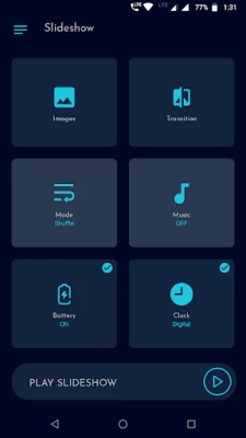 its simple app that just to watch your photos from your gallery to your phone screen with background music and cool transition effects.