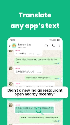 Get instant translations within ANY app - WhatsApp, Instagram, YouTube, games, browsers, and more. No copy-paste needed. Just drag the bubble to any text and