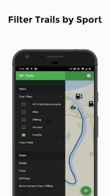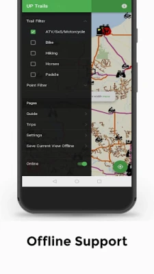 App is user friendly showing an easy to follow map marked trails, points of interest, fuel, food, lodging, camping, services, photos and more. 1000+ miles of State, Local and National Forest ATV/UTV and Multi-use routes and trails. 15 different planned ATV/UTV and Multi-use rides & loops including total mileage, sites to see, places to eat, camp, stay and visit. Water trails for kayak’s and canoeing showing water class, launch and take out sites. 25+ miles of Horse trails to follow including trailheads for parking and camping sites. 4 different Bike trails systems and miles and miles of multi-use route that share with bikes. Endless miles of hiking trails through the wilderness of the Upper Peninsula. Enjoy the Trails!!