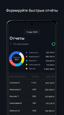 — Отчёты: какие блюда больше покупали, кто из официантов лучше продавал, как гости платили (картой, наличными, бонусами).